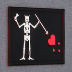 - Double layer patch, outline, skeleton, spear and heart are raised