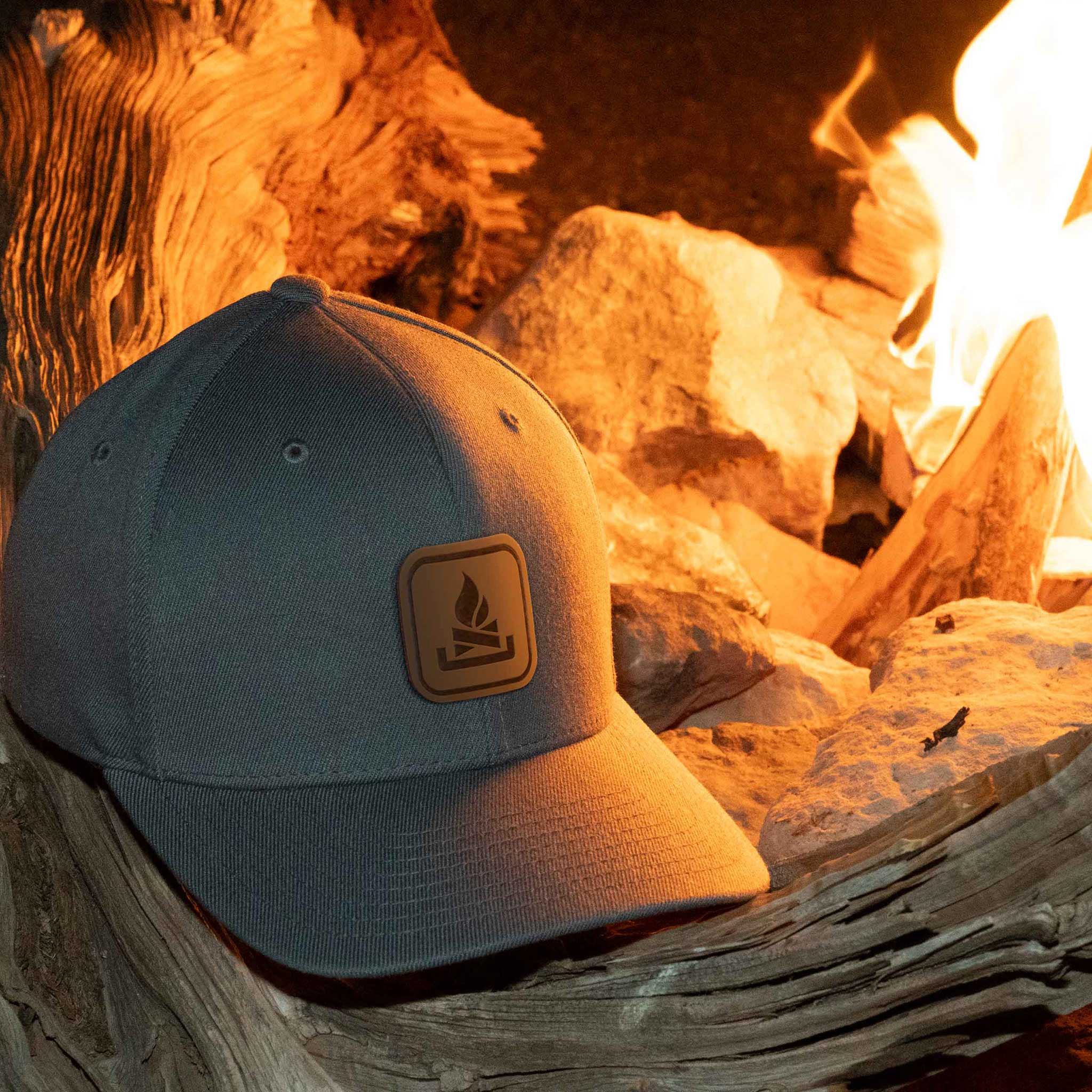 Campfire Trail Sign (Leather) - Flexfit® Premium Wool Blend Cap